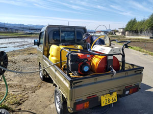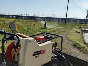 除草剤の散布を行いました。散布に合わせ農用地、水路、農道の点検も 実施しました