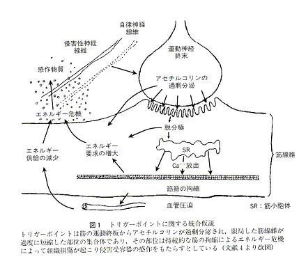 Y (NPY)が共存しており,ATPやその分解産物であるアデノシンには発痛作用があり,NPYには血管や筋の収縮作用がある。そこで,トリガーポイントの成因として挙げられている持続的筋収縮に伴う血流阻害とエネルギー危機による発痛物質の産生に,交感神経が関与していることは十分に考えられる.交感神経と筋緊張の関連については拙稿を参照願いたい。