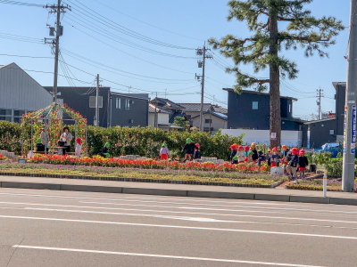R7.3.15 能美市から配布のポンポネットデージー(ヒナギク)、ビオラ、パンジー600株を植栽しました |