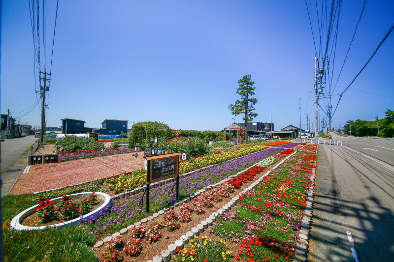 | この一本松は古来から生き残る福島町のシンボルになっています。 その所以から、この地を「一本松きらく園」と名し、男性有志たちによって一本松の保全と花壇造りを行っています。 |
