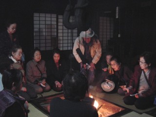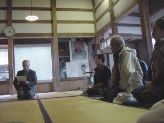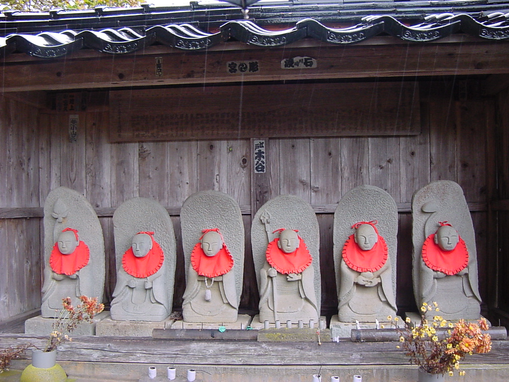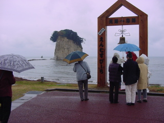 まずは羽咋郡志雄町の「岡部家」です。謡曲「忠度」「俊成忠度」に出てくる忠度を一の谷で討った「岡部六弥太」が、この家の祖であるとの事です。この豪族の家は、古文書や豪華な昔の調度品などが並べてあり、お庭も素敵です。 かやぶきの岡部家の囲炉裏で、火を燃してもらいました。 最近の新聞記事に寄れば、岡部家の維持が困難なため、当主が市に寄贈とでていました。 続いて能登一ノ宮の「気多大社」です。七五三の子供も見え、参道には大輪の菊も展示してありました。謡曲「鵜祭」はこの神社が舞台となっていて、現在金春流で演能されています。佐野巌先生が地元の謡曲として、宝生流での復曲運動されていましたが、亡くなられて立ち消えになりました。 続いて珠洲市の「永禅寺」に立ち寄りました。門前の茂みの中に「曽我兄弟」の墓と伝えられる無縫塔があります。十郎の恋人の虎御前がここに寺を建て、兄弟を弔いました。永禅寺の本尊は虎の護持仏とのことです。 永禅寺の和尚さんに頼んで、無理やりにお話をお伺いしました。説教とは違って大変みたいでした。 曽我兄弟を扱った謡曲に「小袖曽我」「夜討曽我」「調伏曽我」「元服曽我」「禅師曽我」があります。 珠洲市正院の「須受八幡宮」の能舞台を拝見しました。能登唯一の舞台と思われます。鎌倉時代より明治まで神事能が行われていたとのことです。 珠洲ビーチホテルで宿泊。 翌日は生憎の雨。見附島に立ち寄ります。弘法大師が唐より投げた密教伝来の「三杵さんしょ」という仏器の内、五鈷杵がこの島の桜の木に架かっていたので、見附島というのだそうです。一緒に投げた三鈷は、高野山の松に架かっていたという話は有名です。謡曲「高野物狂」はこの松の下の話です。 続いて能都町羽根の「弁天島」に寄りました。この島にも謡曲「羽衣」の伝説が残っています。天人は漁夫と結婚し、やがて夫の漁夫の遭難を助けるため、この島より身を投げて夫の身代わりになります。 最後に穴水町明千寺にある「明泉寺」を訪ねました。交通の不便なところで大きな車は行き難い所です。この明泉寺のそばに鎌倉屋敷と呼ばれる、中世の墓地があります。五輪塔が多数あり、中でも最も大きいのが源頼朝の墓だといわれています。頼朝は「七騎落」「大仏供養」など多くの謡曲に名が登場します。 明泉寺は大きなお寺ですが、大分荒れ果てた感じです。これも無理やりにお話を伺ったお母さんによれば、息子の和尚さんはサラリーマンで、なかなか和尚に専業出来ないとか、家庭の話が半分で、それなりに面白かったです。 明泉寺のお地蔵さんに見送られて今回の旅行はお終いです。 旅行日 2002.11 |