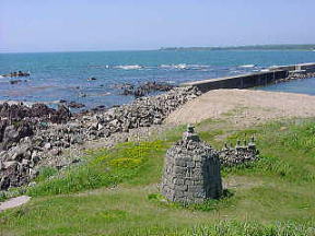 国道249号線を行き、志賀町に入ると大島の海岸に寄りました。岬の突端に「大島緒願堂」があります。石塔の3.06mの石積六角地蔵搭が建っています。立札に依れば、長方形の切石を用材として、六角形に積み上げ搭身を構成する。六面にそれぞれ、蓮座の上に立つ地蔵菩薩を刻んだ石がはめ込まれいてます。伝承に依れば、現在の長崎県の大村市の船主・武太夫が、この沖で難破した息子と乗組員の霊を供養するため、故郷の石材を運んで建立、とあります。室町時代の事らしいです。 日本海に沈む真っ赤な夕日に、シルエットが似合いそうな石塔です。