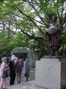 能楽喧窮会の仲間達とマイクロバスで金沢を出発、若狭路の謡曲古跡探訪に出かけました。 先ずは、敦賀市内の気比神宮です。謡曲「安宅」の道行きに「気比の海宮居久しき神垣や」とあるのがこの神宮です。また俳人芭蕉は奥の細道に「その夜、月殊晴たり。あすの夜もかくあるべきにやといへば、越路の習ひ、猶明夜の陰晴はかりがたしと、あるじに酒すすめられて、けいの明神に夜参す。」と書いています。8月14日に敦賀に着いた芭蕉は、宿の主に勧められて、気比神宮に夜参りして、月清し遊行のもてる砂の上、と詠みました。「十五日、亭主の詞にたがはず。雨降。 名月や北國日和定なき 」8月15日は、新暦で9月28日で、仲秋の名月でしたが、亭主の云ったとおり雨が降りました。 境内は広く、芭蕉の銅像や句碑が多数あります。国宝だった本殿は昭和20年の戦災で焼失、現在は再建された新しいものです。木造大鳥居だけが焼け残り重要文化財になっています。