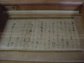 芭蕉の奥の細道によれば「十六日、空はれたれば、ますほの小貝ひろはんと、種の浜(色の浜)に舟を走らす」とあります。西行法師が「潮染むるますほの小貝拾うとて 色の浜とは言ふにやあるらん」と詠んだ所で、西行を慕う芭蕉も、海上よりここを訪れました。色の浜は江戸時代とあまり変わっていない雰囲気の漁村です。「侘しき法華寺あり。ここに茶飲、酒をあたためて、夕暮れのさびしさ感に堪へたり。 寂しさや須磨にかちたる浜の秋 波の間や小貝にまじる萩の塵 その日のあらまし、等栽に筆をとらせて寺に残す。」この侘しき法華寺とは本隆寺のことです。お寺に頼んで、福井の俳人等栽に書かせた、其の日のあらましの文、を見せて頂きました。最後に芭蕉が「小萩ちれますほのの小貝小盃」と書きこんでいます。