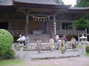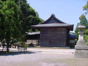 上中町の須部神社にも能楽堂があります。ここでも年に一度、10月28日に能が奉納されます。能を奉納する地元の能楽倉座は、太夫がいて、面・装束も持っている本格的なものです。それでも最近は後継者難で困っているようです。 神社は古樹・老木が鬱蒼と茂り、本殿・拝殿・幣殿・神門・能楽堂とあり、恵比寿様が祭られており近隣の信仰を集めています。