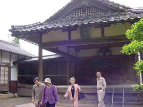 歌手五木ひろしの出身地にある五木茶屋で昼食休憩。 次いで美浜町の弥美(ミミ)神社の能舞台(写真)を訪ねました。今でも8月20日に、地元の倉座が能を奉納しています。次に訪ねた舞台は三方町の宇波西(ウワセ)神社の能舞台。ここは橋掛かりがありません。8月19日に能があります。 次いで近くの三方石観音にお参りしました。諸国巡錫の弘法大師がこの地に杖を留め、一夜観音像を刻みましたが、右の手首を残したところで夜が明け、大師は右手首から先を未完のまま山を下っていったと言われています。花崗岩に刻まれた観音像です。古くから手足の不自由な人達に信仰が厚いです。秘仏で残念ながら拝めませんでした。