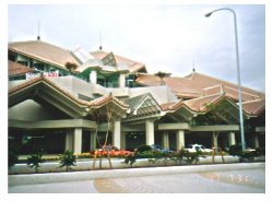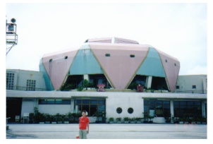 空港は97年9月にリニューアルしました(写真右)。左の写真が古い空港で、花笠をかぶった形から「花笠空港」と呼ばれました。乗客は航空機を降りて歩いてターミナルに向かっていた点がとてもローカルで良かったです。