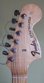 71年までのスタンダードモデルです。シリアルが若いので69年モデルとして売られていましたが、ピックアップには71年の表記があります。ボティサイズが少し小さい気がします。私はほとんどのストラトのぺグをシャーラーM6miniに替えてあるのですが、このギターのヘッドは厚くて1・2弦のワッシャーがセットできませんでした。