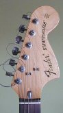 これを買った当時、張りメイプルのネックはボディがホワイトの’67ジミヘンモデルしかなかったので、ゴールドカラーのヘッドデカールを自分で書き替え、ボディをブラックのものと交換しました。上で紹介したフェンダーUSAストラトのセンターピックアップをこのモデルのフロントとリアにセットしてあります(ピックアップ表記がないギターも同様)。音は太く艶があり、とても良いです。ストラトはネックで音色が左右されることを考えると、張りメイプルである事が良い要因かもしれません。本物は高くて買えませんけど(100万円以上する)。